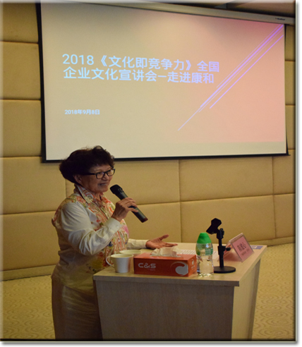 9月8日,汉方.德昌祥药业、康和药业联合举办的2018《文化即竞争力》全国企业文化宣讲会-走进康和,汉方药业姚厂发董事长于百忙中赴我司作《文化即竞争力》专题讲座,出席嘉宾有公司董事长陈健心女士、裴红总经理、汉方药业姚厂发董事长以及汉方药业、广东健拓药业各事业部团队。